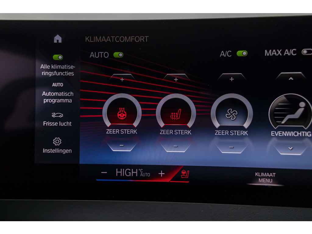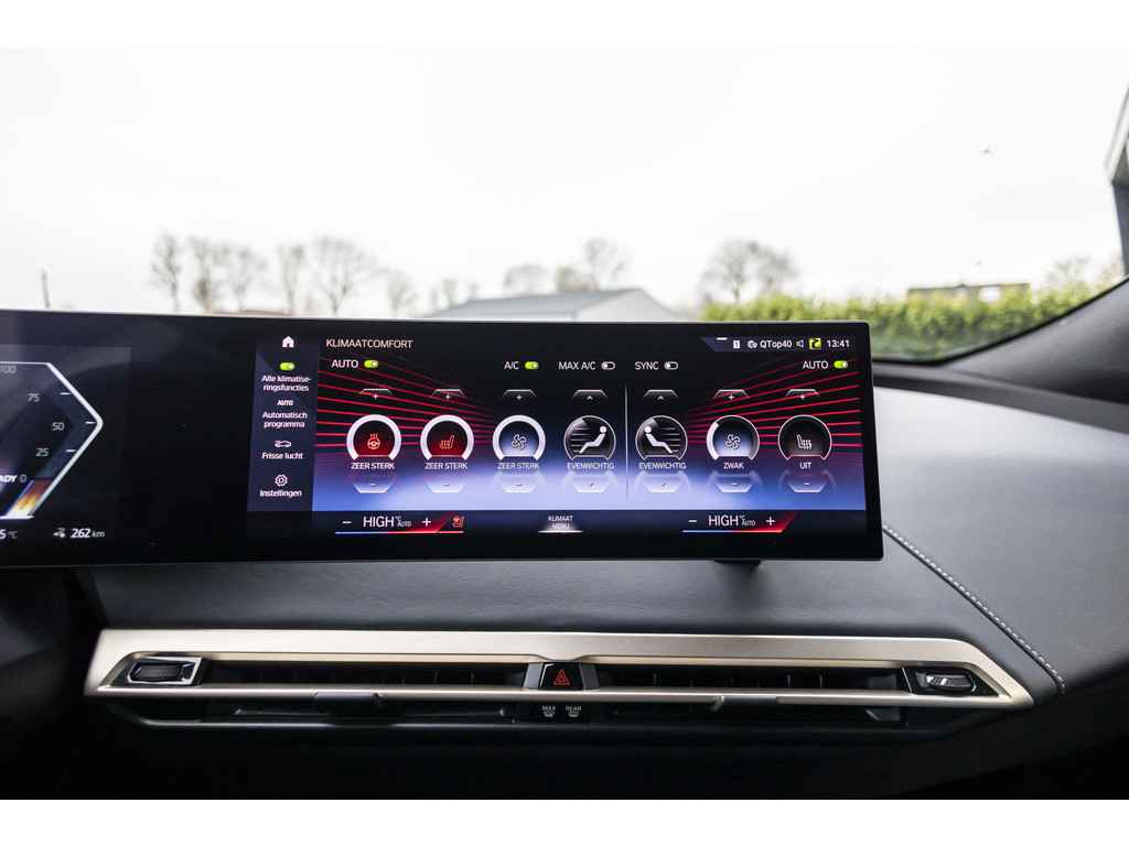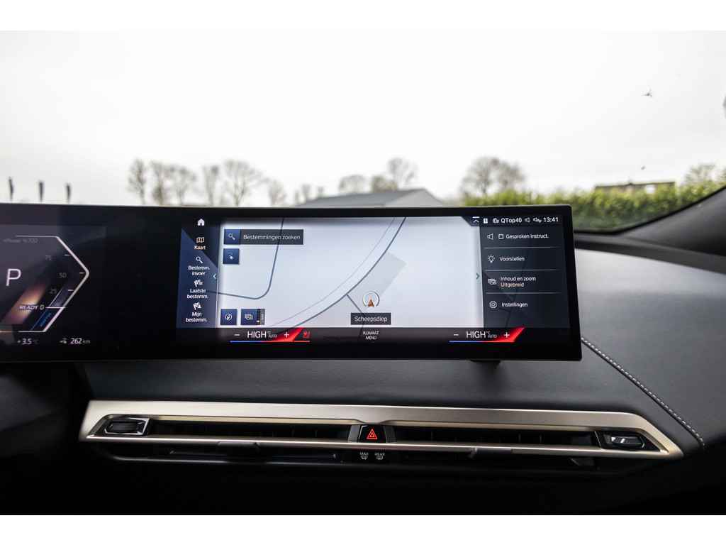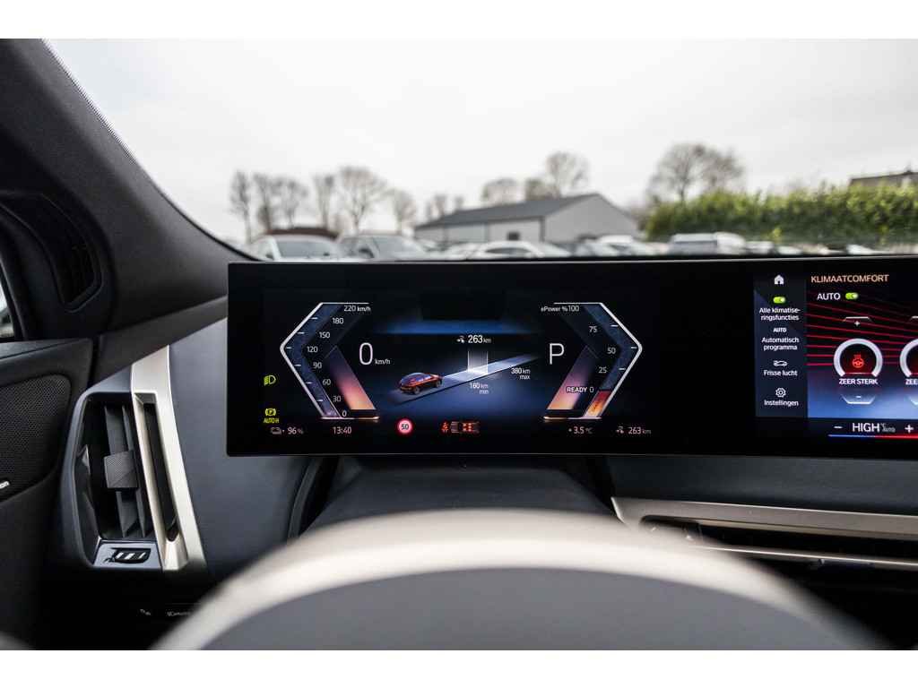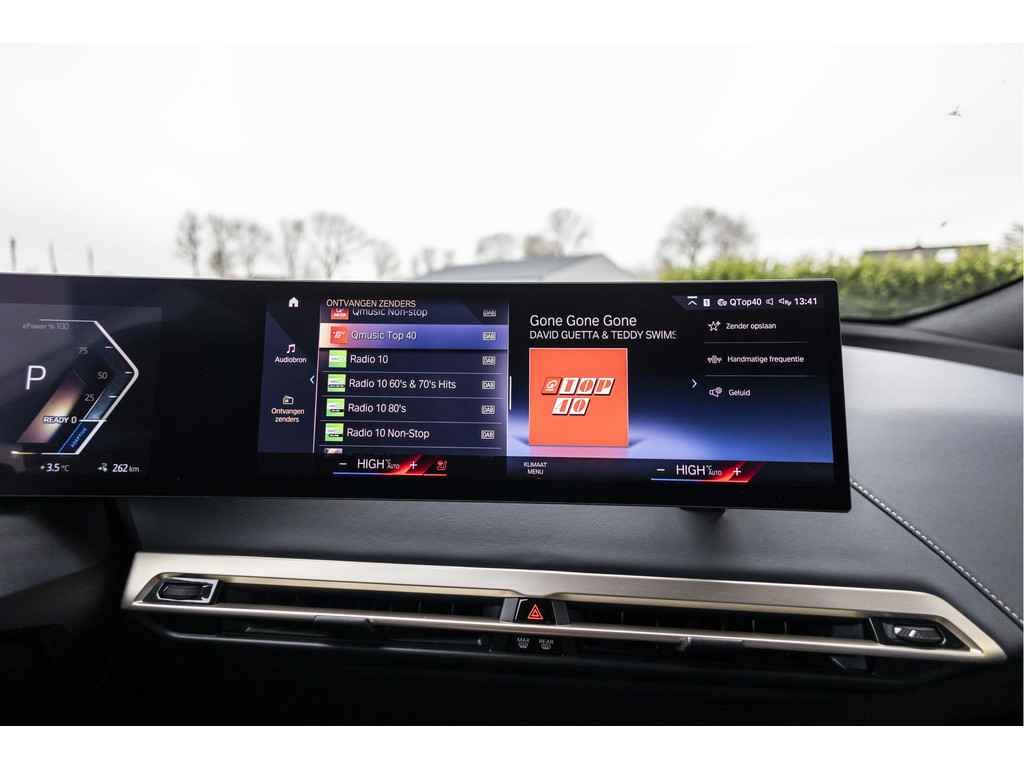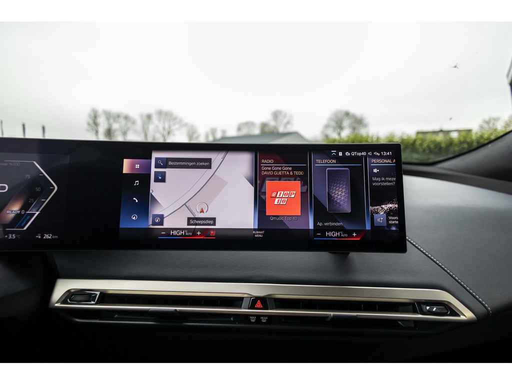 Geavanceerde veiligheidssystemen kijken tijdens elke rit met u mee en schatten continu de risico's in. Blijf voor u kijken, terwijl u de rij-informatie afleest op uw voorruit. Daarvoor zorgt de head-up display! De actuele snelheidslimiet, een inhaalverbod en andere verkeersborden; de verkeersborddetectie ondersteunt u tijdens elke rit. Deze BMW iX is ook behulpzaam als het gaat om een rechte koers. Het Lane-keeping systeem signaleert en corrigeert als u onbedoeld de rijstrooklijnen dreigt te overschrijden. Ook helpen het dodehoekdetectie, forward collision warning system, hill hold functie, brake assist, vermoeidheidsherkenning en bandenspanningcontrolesysteem, uw rit tot een veilige rit te maken.