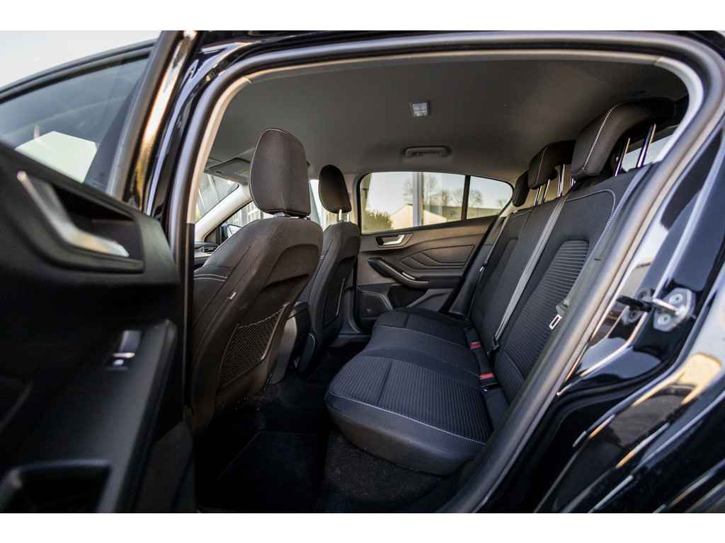 Elektronische veiligheidsvoorzieningen helpen u onderweg om de situatie op de weg te beoordelen. Deze systemen waarschuwen u als er een riskante situatie ontstaat, en kunnen in bepaalde gevallen ook zelf ingrijpen. In het instrumentarium ziet u tijdens de rit ook de belangrijkste verkeersborden aangegeven, die de auto automatisch voor u leest. Deze Ford Focus is ook behulpzaam als het gaat om een rechte koers. Het Lane-keeping systeem signaleert en corrigeert als u onbedoeld de rijstrooklijnen dreigt te overschrijden. Onbedoeld bumperkleven is er niet bij, dankzij de forward collision warning. Die waarschuwt direct als een botsrisico met uw voorligger dreigt. Met voorzieningen als hill hold functie, brake assist en bandenspanningcontrolesysteem, bent u altijd veilig onderweg.