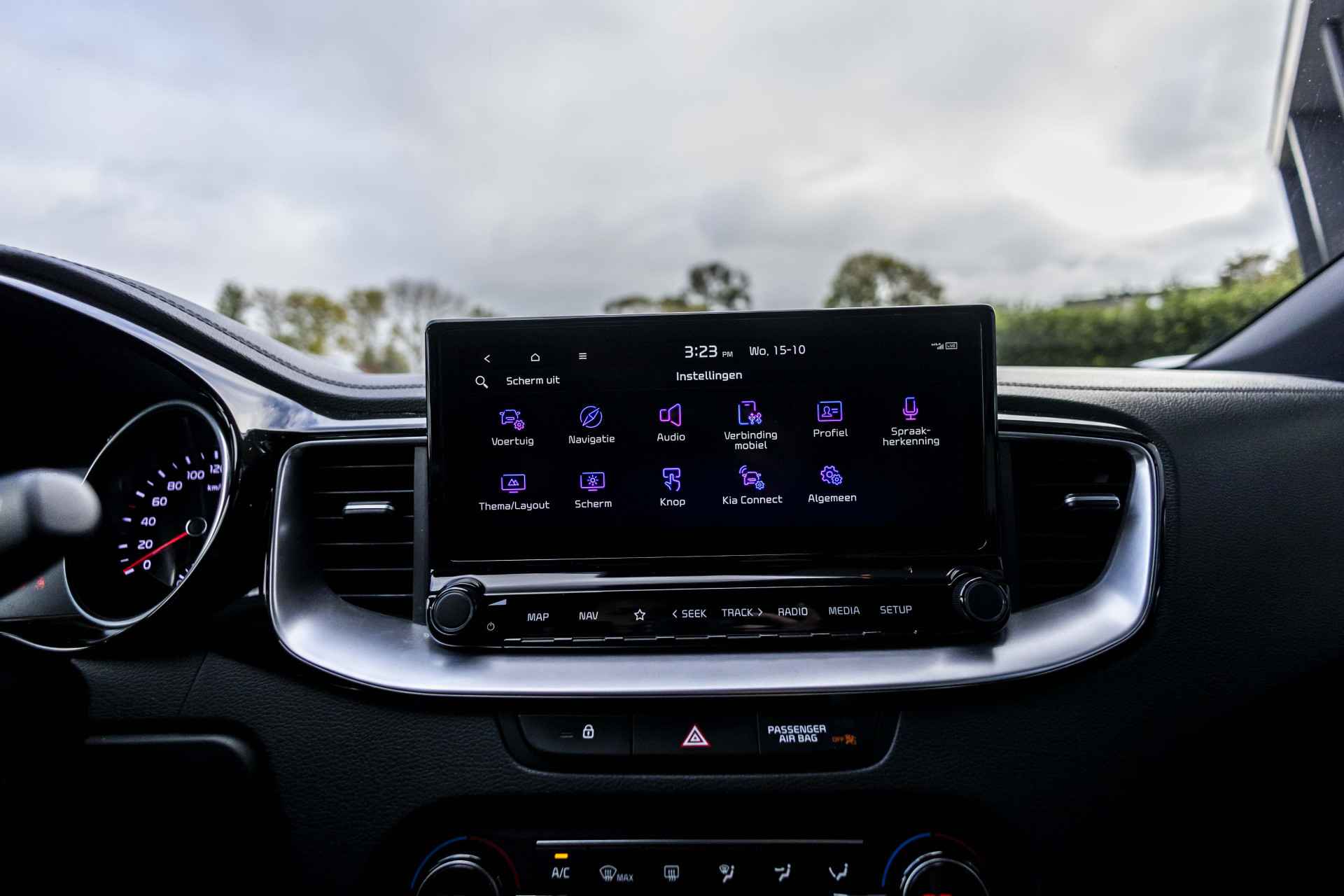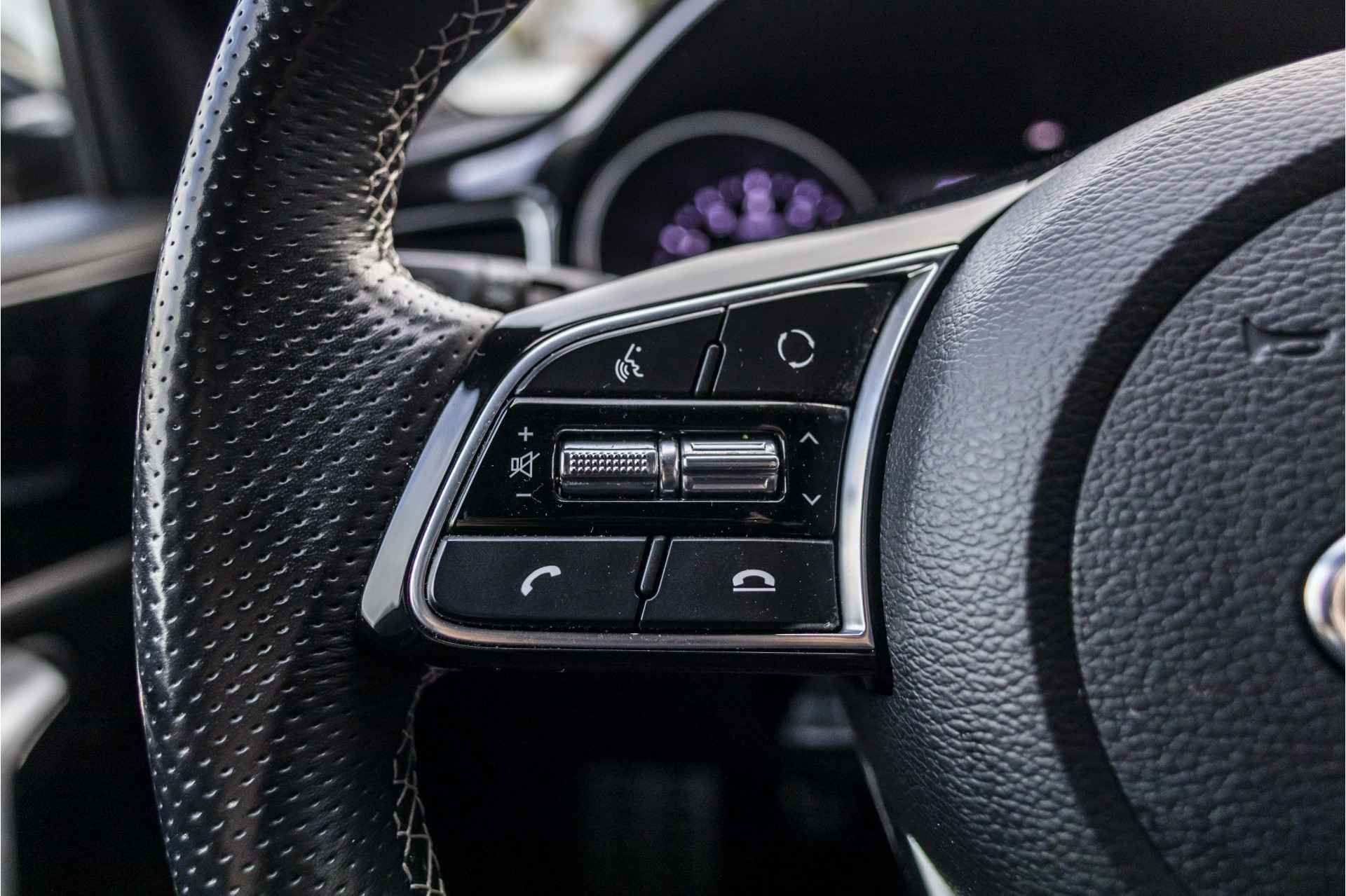 Alles vrij achter? De achteruitrijcamera laat het meteen zien. Kilometerstand? Oliepeil? Accuspanning? Allemaal te zien via de app. Overal. Altijd. Dankzij Connected Services. Uw veiligheid op de weg wordt verhoogd door het audiosysteem met DAB-ontvangst en het navigatiesysteem te bedienen vanaf het stuur of met spraakbediening, zodat uw handen veilig op het stuur blijven en uw ogen gericht zijn op de weg. Het spreekt voor zich dat een auto als deze ook van automatische airconditioning is voorzien. In deze Kia kunt u zich concentreren op het verkeer, terwijl de auto de omgeving voor u in de gaten houdt. Een automatisch inschakelbare verlichting zorgt dat de verlichting aangaat als het donkerder wordt - in tunnels bijvoorbeeld - en de regensensor schakelt de ruitenwissers in als het nodig is. U hoeft er niets aan te doen. De Kia is standaard voorzien van: cruise control, automatisch dimmende binnenspiegel, isofix-aansluiting, usb-aansluiting, centrale deurvergrendeling met afstandsbediening en lederen versnellingspook.
