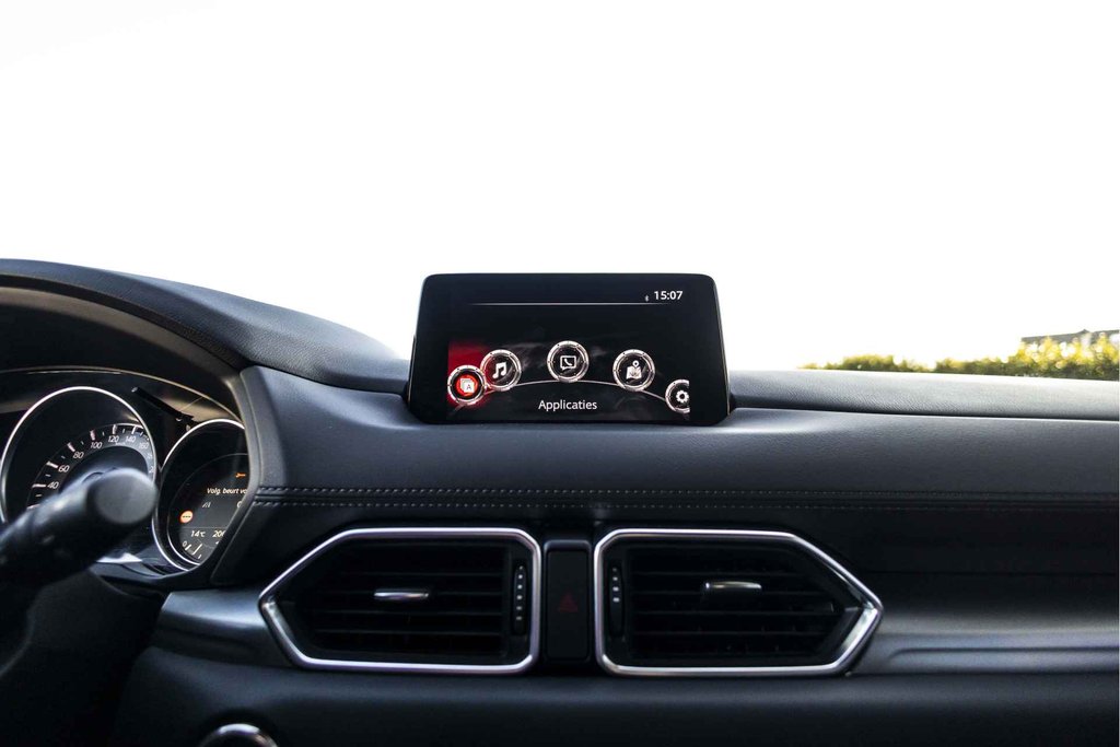 Zoals u mag verwachten van deze Mazda CX-5 is hij uitgerust met een reeks aan actieve veiligheidssystemen. Een belangrijke bijdrage aan de veiligheid onderweg levert de verkeersbord-detectie. Keep your lane? Het Lane-keeping systeem zorgt er automatisch voor. Ook als uw aandacht even verslapt, blijft de forward collision warning bij de wekker. Dreigt er een botsing met een voor- of tegenligger, dan waarschuwt het systeem direct. In deze Mazda vinden we verder een head-up display, dodehoekdetectie, hill hold functie, brake assist, vermoeidheidsherkenning en bandenspanningcontrolesysteem.