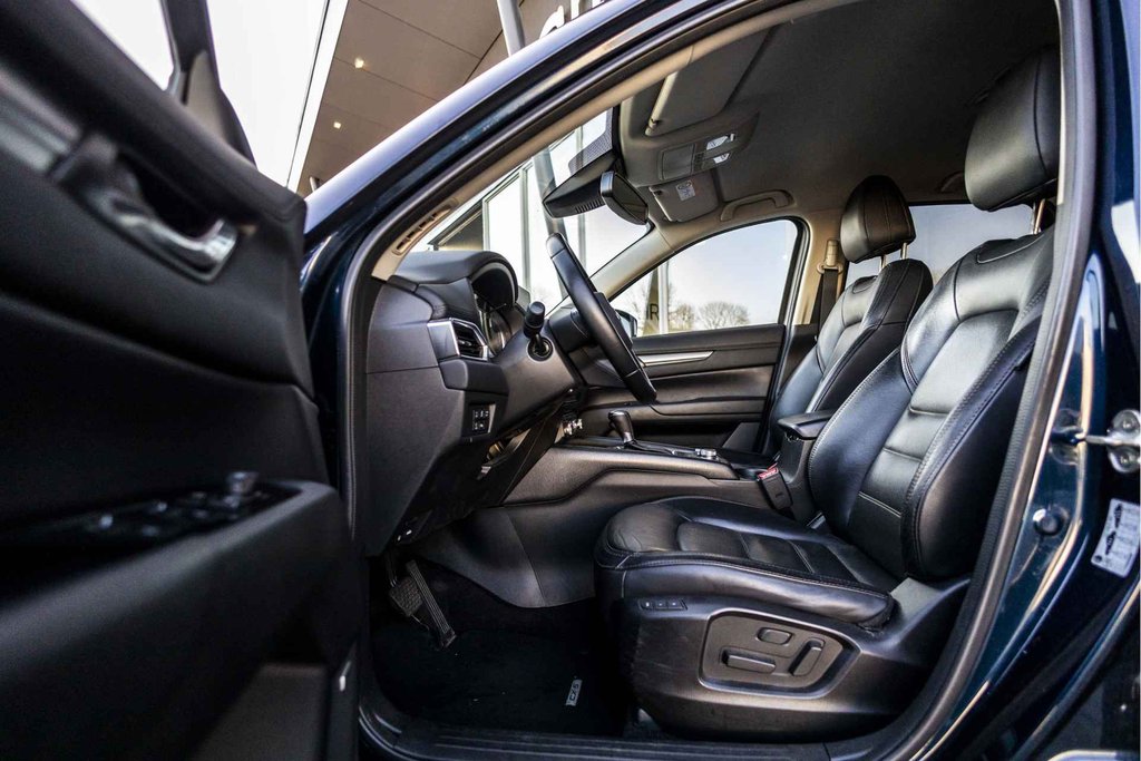 De vormgeving van deze Mazda CX-5 is stijlvol maar ingetogen en dat maakt meteen duidelijk dat u van deze auto pure kwaliteit mag verwachten. De aandrijving van deze Mazda wordt verzorgd door een viercilinder benzinemotor en een automatische transmissie. Een blik van dichtbij onthult meteen twee mooie pluspunten: het lederen interieur en de elektrisch bedienbare achterklep. Dankzij de elektrische stoelbediening is het gemakkelijk om de optimale zitpositie te vinden. Nooit meer koude handen of koude vingers in de auto. Stuurverwarming zorgt ervoor dat het stuur behaaglijk warm aanvoelt. Bij de zeer complete uitrusting van deze auto behoren ook 19 inch lichtmetalen velgen, Full LED koplampen, sportinterieur, dakspoiler, donker getint glas achter en in delen neerklapbare achterbank.