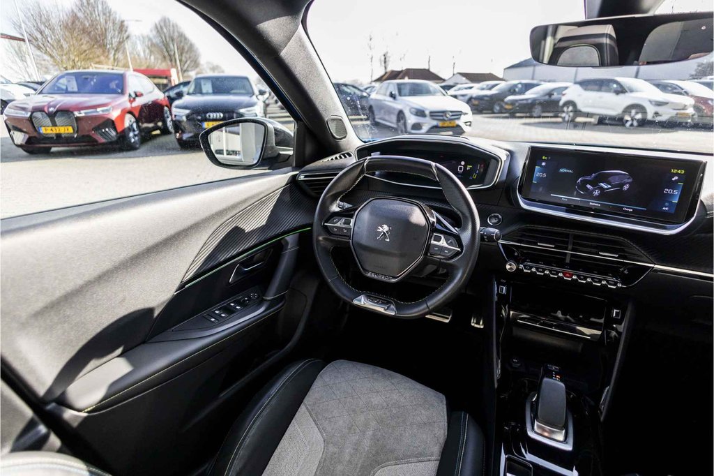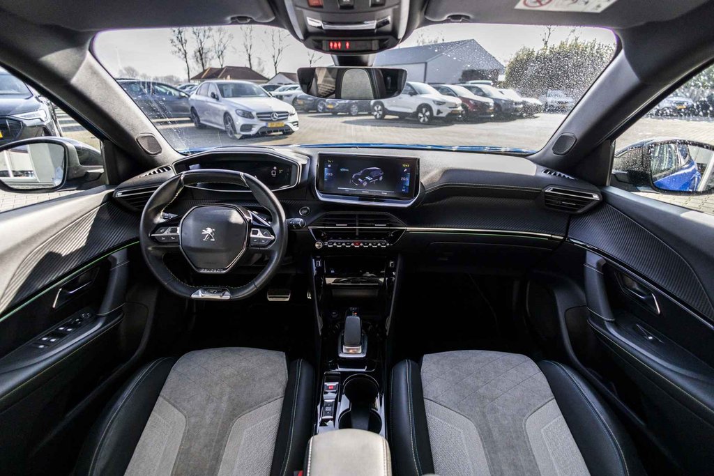 De Peugeot e-2008 vertegenwoordigt de nieuwe generatie auto's en verenigt elektrische kwaliteit en duurzaamheid met elkaar. U hoort slechts het lichte gezoem van de elektromotor tijdens het rijden. De hoogwaardige uitstraling van deze auto wordt benadrukt door de lederen bekleding. Doe maar luxe! Neem plaats in de verwarmbare voorstoelen en voel de weldaad in koude dagen. Sportief rijden stelt eisen aan een stevige zitpositie voor rijder en bijrijder. Vandaar de strakke sportstoelen! Het interieur baadt in een zee van licht met het elektrische bediende glazen panoramadak. In het donker zorgt de xenonverlichting voor een goed zicht op de weg. Verder is de Peugeot uitgerust met: 18 inch lichtmetalen velgen, Full LED koplampen, zwarte hemelbekleding, donker getint glas achter, in delen neerklapbare achterbank en LED-achterlichten.