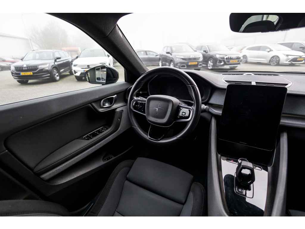 Bij het ontwerpen van de Polestar 2 stonden comfort en praktische bruikbaarheid centraal. Met de elektromotor rijdt u stil en snel de toekomst in. Maar ook schoon en zuinig. De krachtige motor geeft deze Polestar uitstekende prestaties. U past de stoelen moeiteloos aan, ze zijn elektrisch in te stellen en hebben bovendien een geheugen. Zelfs op de koudste dagen zorgt het verwarmbare stuurwiel, de voorstoelen en de achterbankverwarming ervoor dat u en uw passagiers het nooit koud hebben in deze luxueuze auto. Een praktische extra is de elektrisch bedienbare achterklep die opent en sluit met een druk op de knop. Het glazen panoramadak laat u genieten van een wijds uitzicht en meer lichtinval. Tot de voorzieningen van deze auto behoren 20 inch lichtmetalen velgen, Full LED koplampen, zwarte hemelbekleding, donker getint glas achter, in delen neerklapbare achterbank en LED-achterlichten.