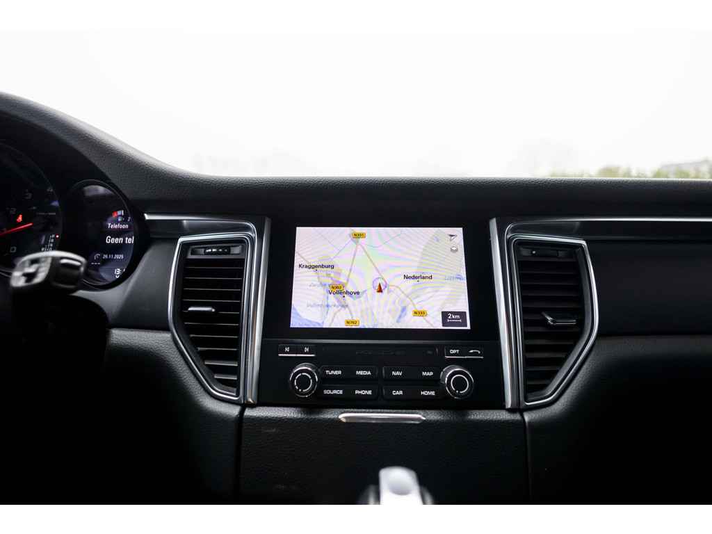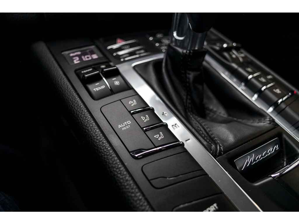 De snelste of zuinigste weg? Het navigatiesysteem aan boord wijst de juiste weg! U verwacht natuurlijk automatische airconditioning in deze auto, en die is er dan ook. Een andere zender zoeken of het volume wijzigen? Het audiosysteem heeft bediening op het stuur. Boem is ho? Niet bij deze Porsche Macan. De piepjes van de parkeersensoren waarschuwen u op tijd voor obstakels. De auto neemt u werk uit handen doordat hij zelf veel in de gaten houdt. Een regensensor en een automatisch inschakelbare verlichting nemen waar wanneer de ruitenwissers en het licht aan moeten. Ook cruise control, centrale deurvergrendeling met afstandsbediening en boordcomputer horen tot de voorzieningen op deze auto.
