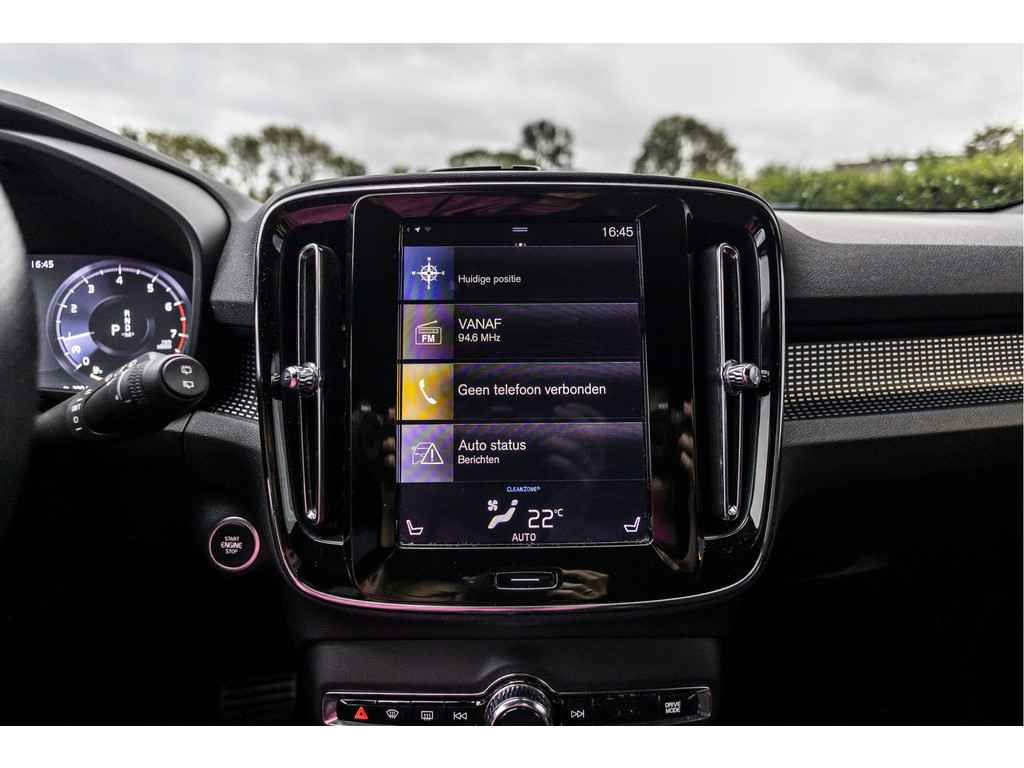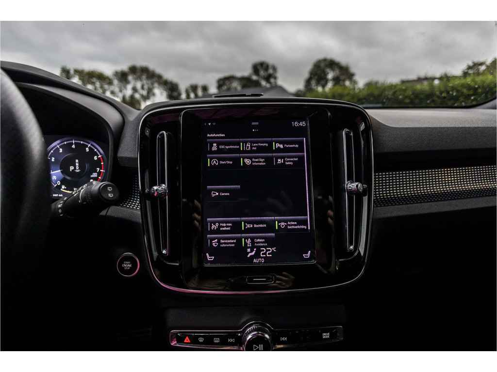 Zoals u mag verwachten van deze Volvo XC40 is hij uitgerust met een reeks aan actieve veiligheidssystemen. U rijdt ook veiliger omdat deze auto voor u de verkeersborden langs de weg kan lezen. De belangrijkste borden worden op uw instrumentarium geprojecteerd, zodat u ze niet kunt missen. Met het Lane-keeping systeem gaat u nooit onbedoeld over de streep. De sensor van het forward collision warning-systeem registreert permanent de afstand tot voorliggers en grijpt in als een botsing dreigt. Bovenop deze veiligheidsfeatures heeft deze Volvo bovendien hill hold functie, brake assist, vermoeidheidsherkenning en bandenspanningcontrolesysteem.